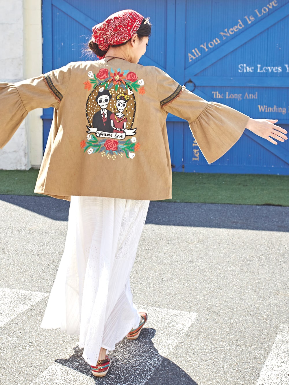先程ご紹介したコーデのバックスタイルです♪ 陽気なカラベラたちと花刺繍でインパクト大!