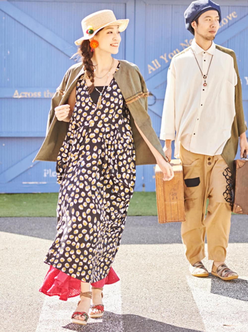 初夏のバカンスコーデ♪ キレイなシルエットのアフリカンドットで 遊び心のある大人スタイルに◎