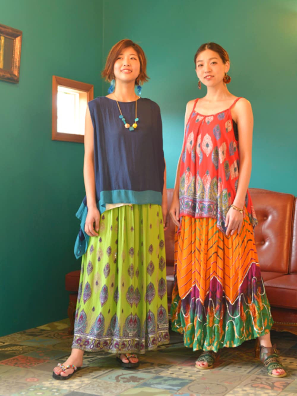 \ 真夏にぴったり! / ★カラフルエスニックコーデ★ アフリカの伝統布「カンガ」をモチーフにしたキャミソールと、 太陽の陽射しに映えるスパンコール刺繍がポイントのロングスカート。 柄on柄で夏を思いっきり楽しみましょ!♪