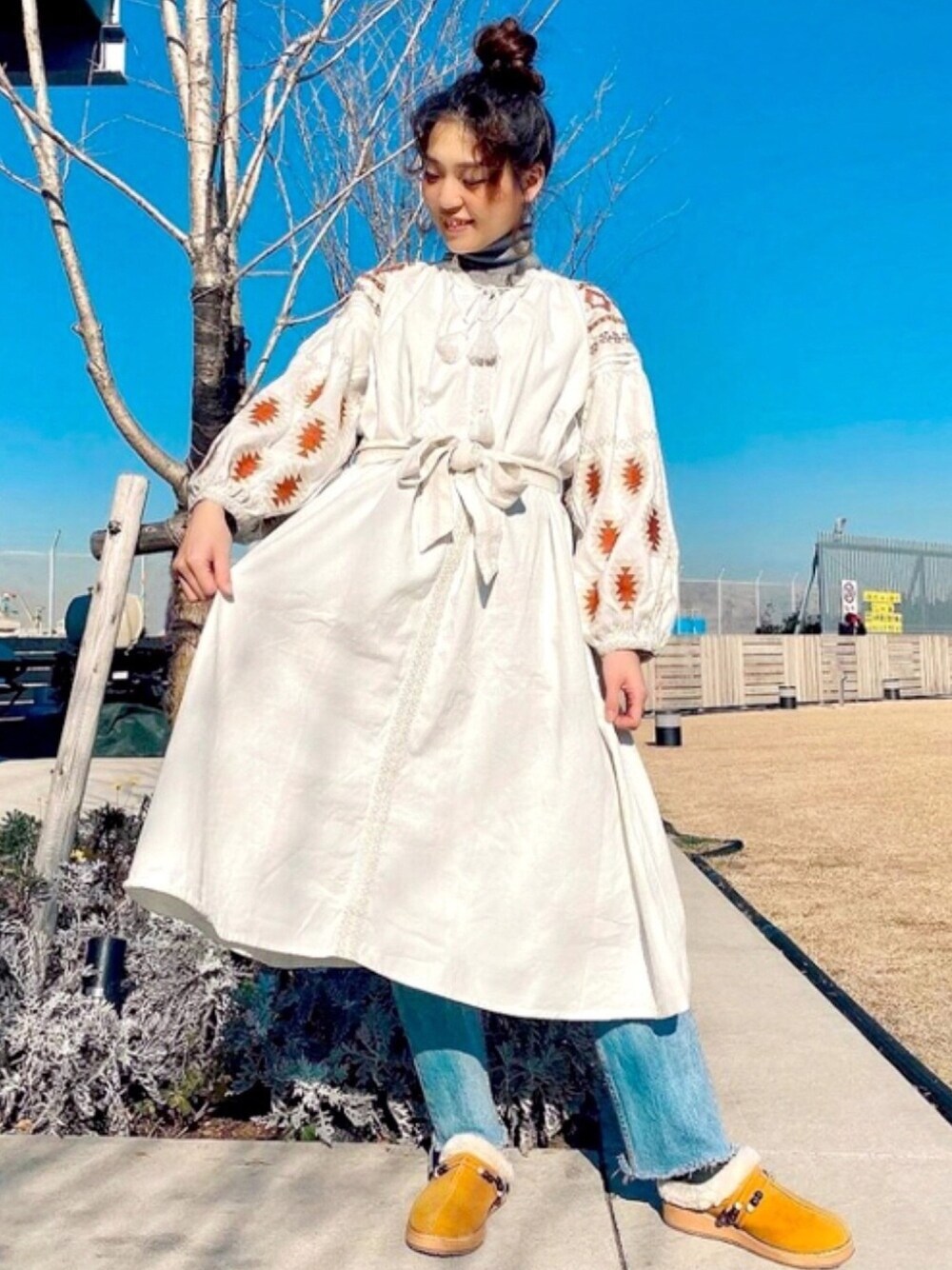 チャイハネSTAFF amiのワンピース「【チャイハネ】ネイティブ柄刺繍ボリューム袖ワンピース」を使ったコーディネート