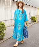 着るだけで心が晴れやかになる 青空を想わせるような 綺麗なブルーのロングワンピース。 フォークロアな花模様は、ひとつひとつ木版を押して柄を付けたブロックプリント。 ハンドメイドならではのぬくもりを感じられるデザイン。 ゆったりとしたオーバーサイズで、休日のリラックススタイルにもぴったりです。
