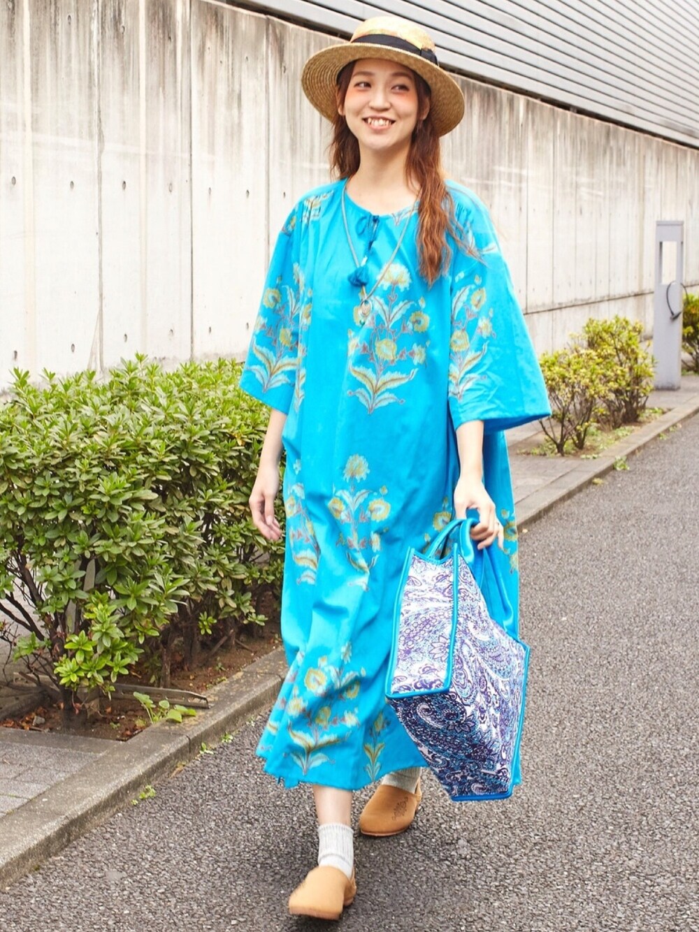 チャイハネSTAFF amiのワンピース「【チャイハネ】ブロックプリント リモーネワンピース」を使ったコーディネート