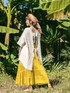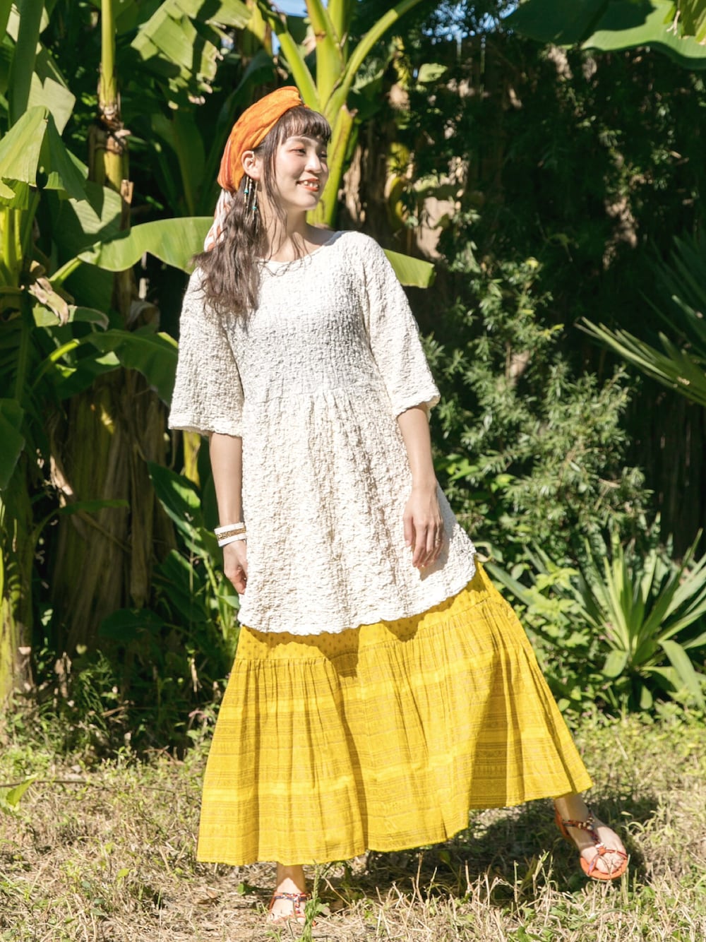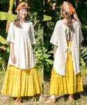 明るく元気な気持ちになれるイエローのロングスカート。 バックリボンが可愛いトップスと合わせて春らしく◎ 『飛躍』の象徴・フェザーモチーフのイヤーフックもおすすめです✴︎