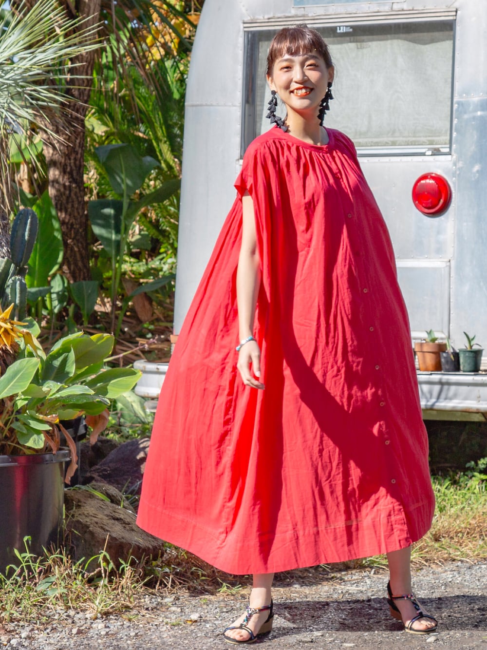 夏の陽射しに映える綺麗な赤✴︎ チャイハネのロングセラー!バンドカラーワンピース。 心地良い涼やかなインド綿で夏コーデにぴったり♪ ビッグシルエットでリラックス感のある着心地も◎ シンプルなので合わせる小物でいろいろ遊べておすすめです!
