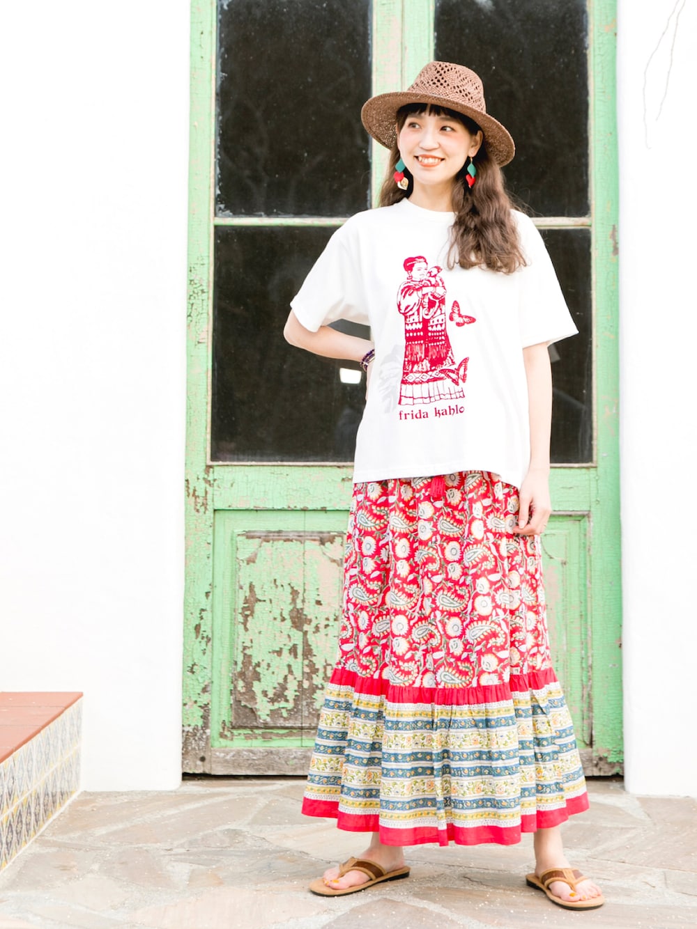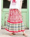 ふわりとなびくシルエットに心躍るよう♪* 赤いティアードスカートが目を惹く、真夏のエスニックスタイル✴︎ ブロックプリントで草花やペイズリー柄をつけた、ハンドメイドならではのデザインが楽しめます◇◆