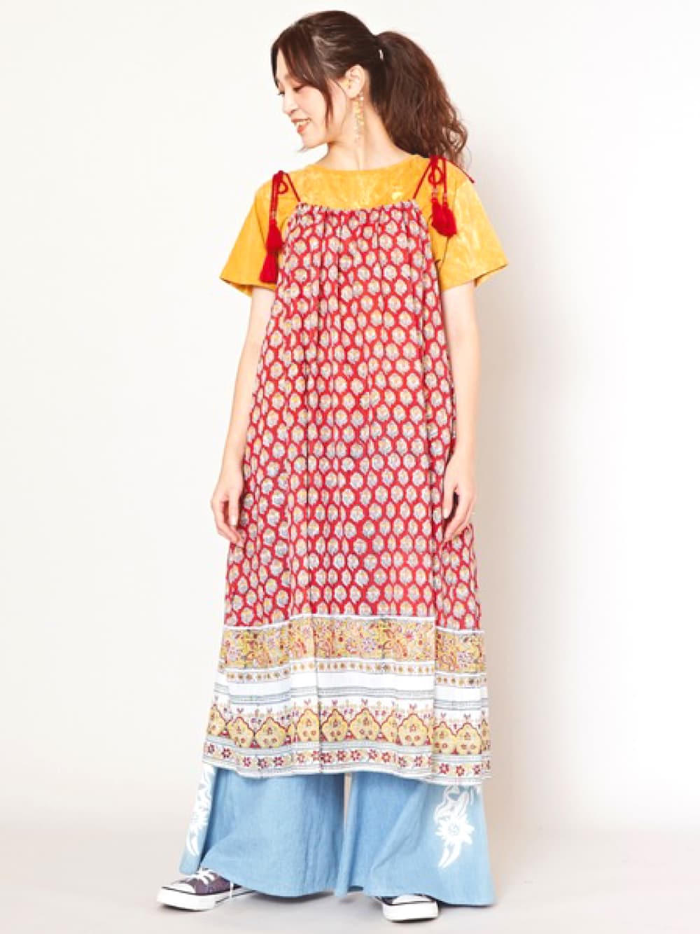 インナーやアウターの合わせ方次第で ロングシーズン楽しめるキャミワンピース✴︎ インドの伝統技法『ブロックプリント』の魅力が楽しめるデザイン♪*
