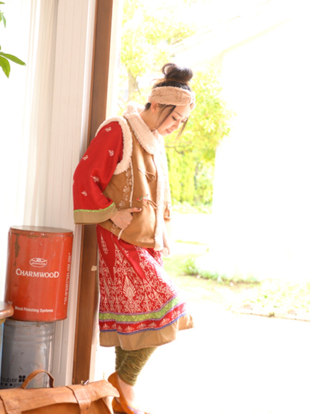 チャイハネSTAFF amiのムートンコート「【チャイハネ】エスキームートンベスト」を使ったコーディネート