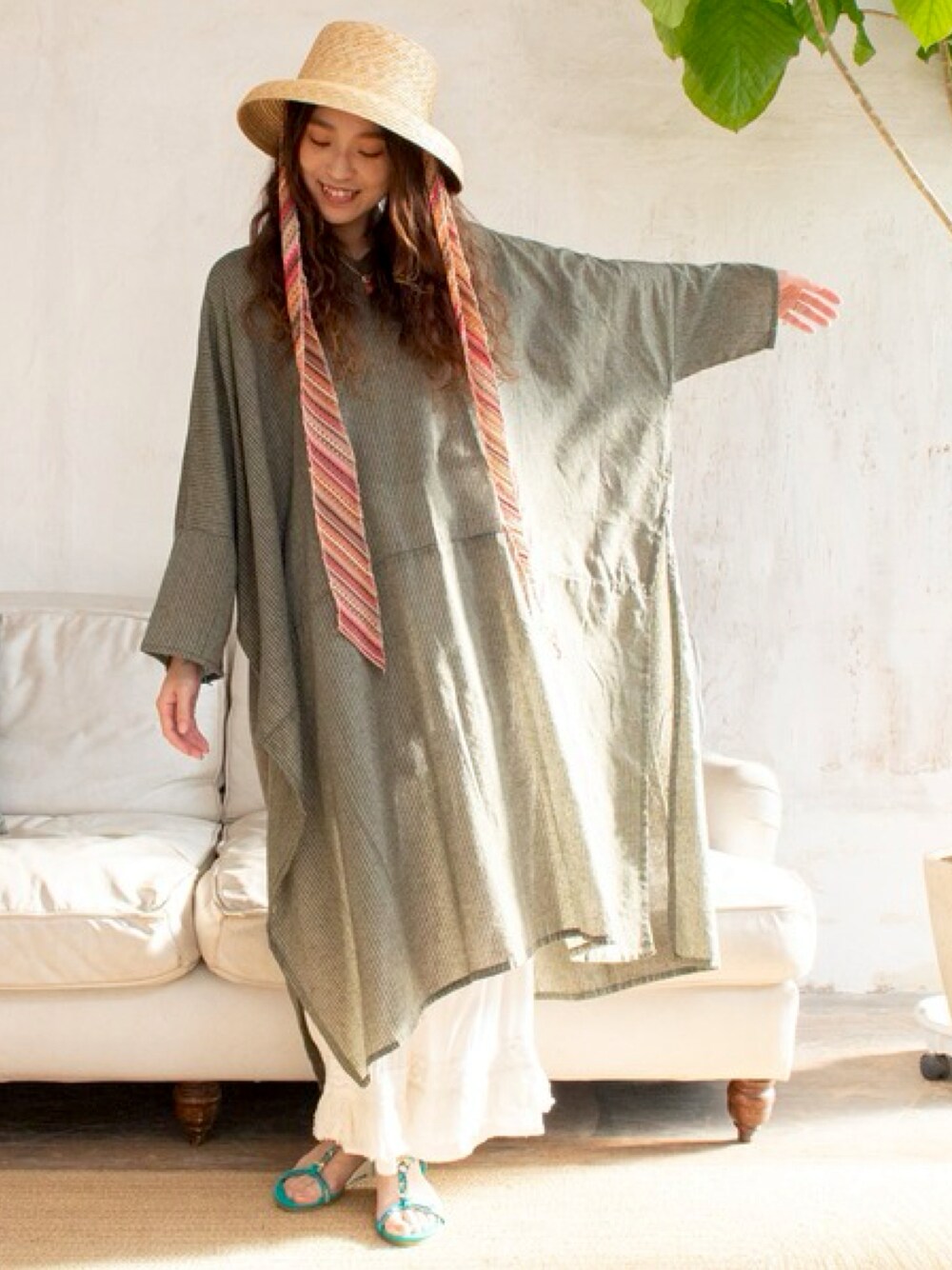 ゆったり楽なビッグシルエットワンピース。 ネパールコットンならではの素朴な風合いで、ナチュラルなスタイルに◎
