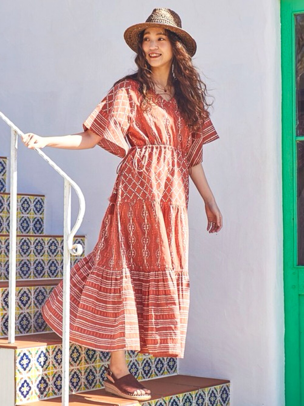 インドのベジタブルブロックプリントのワンピース。 ハンドワークが楽しめる夏のフォークロアスタイル✴︎