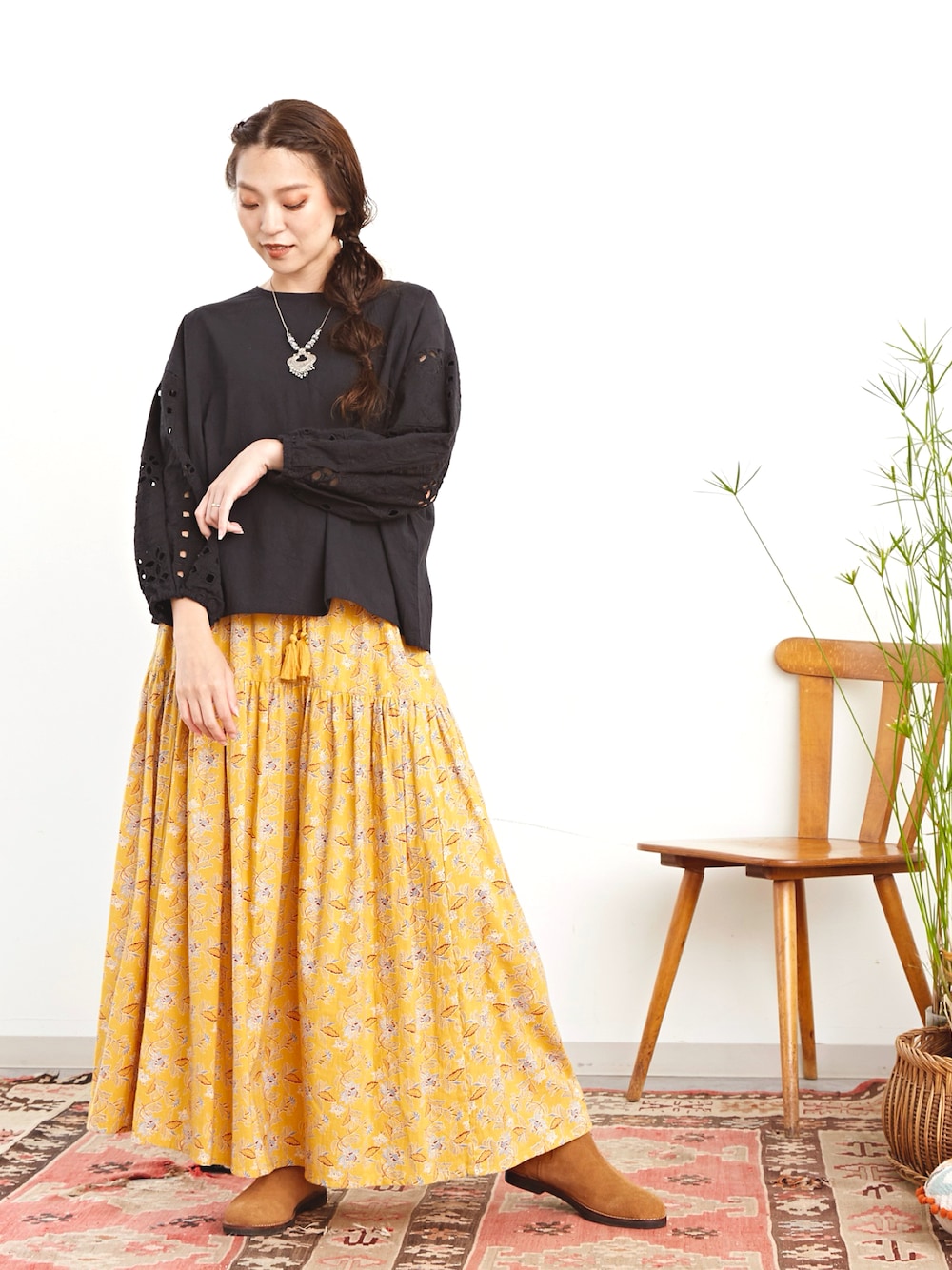 まだまだ暑いけれど、そろそろ秋服準備♪ 昨年大人気だったボタニカル柄スカートに、今年は新色イエローが登場! 秋らしさを色で楽しんで♪*