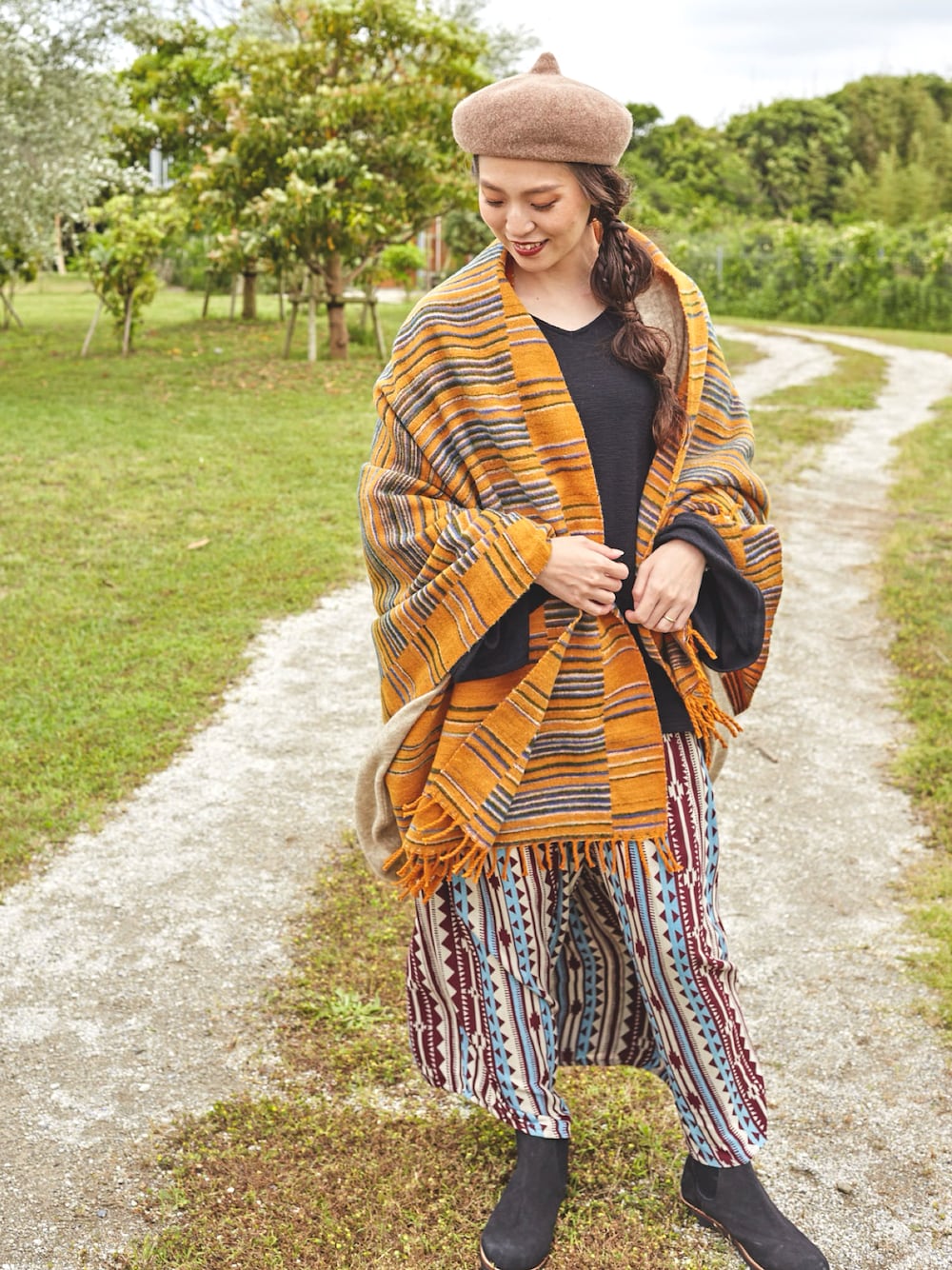 チャイハネSTAFF amiのマフラー「【チャイハネ】カラフルボーダーBIGショリルストール」を使ったコーディネート