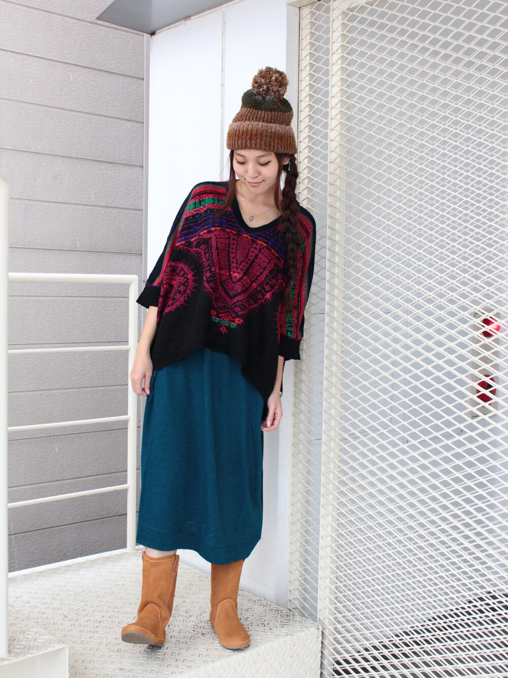 たっぷりとしたチャイハネらしい柄のドルマンニットを、今年らしくミモレ丈スカートに合わせました! こちらのニットは、アフリカのダシキという柄です。 夏にはよく見かけるこの柄を、チャイハネ的にニットジャガードで表現しています。 色使いもたまりません♪ ぬくぬくニットが楽しい季節ですね!