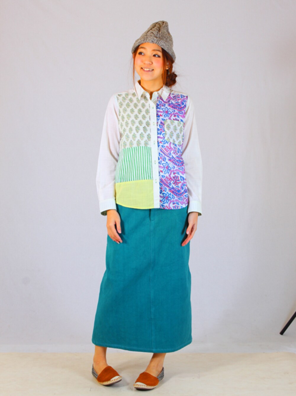 チャイハネSTAFF amiのシャツ/ブラウス「【チャイハネ】パッチワークブロックプリントシャツ」を使ったコーディネート