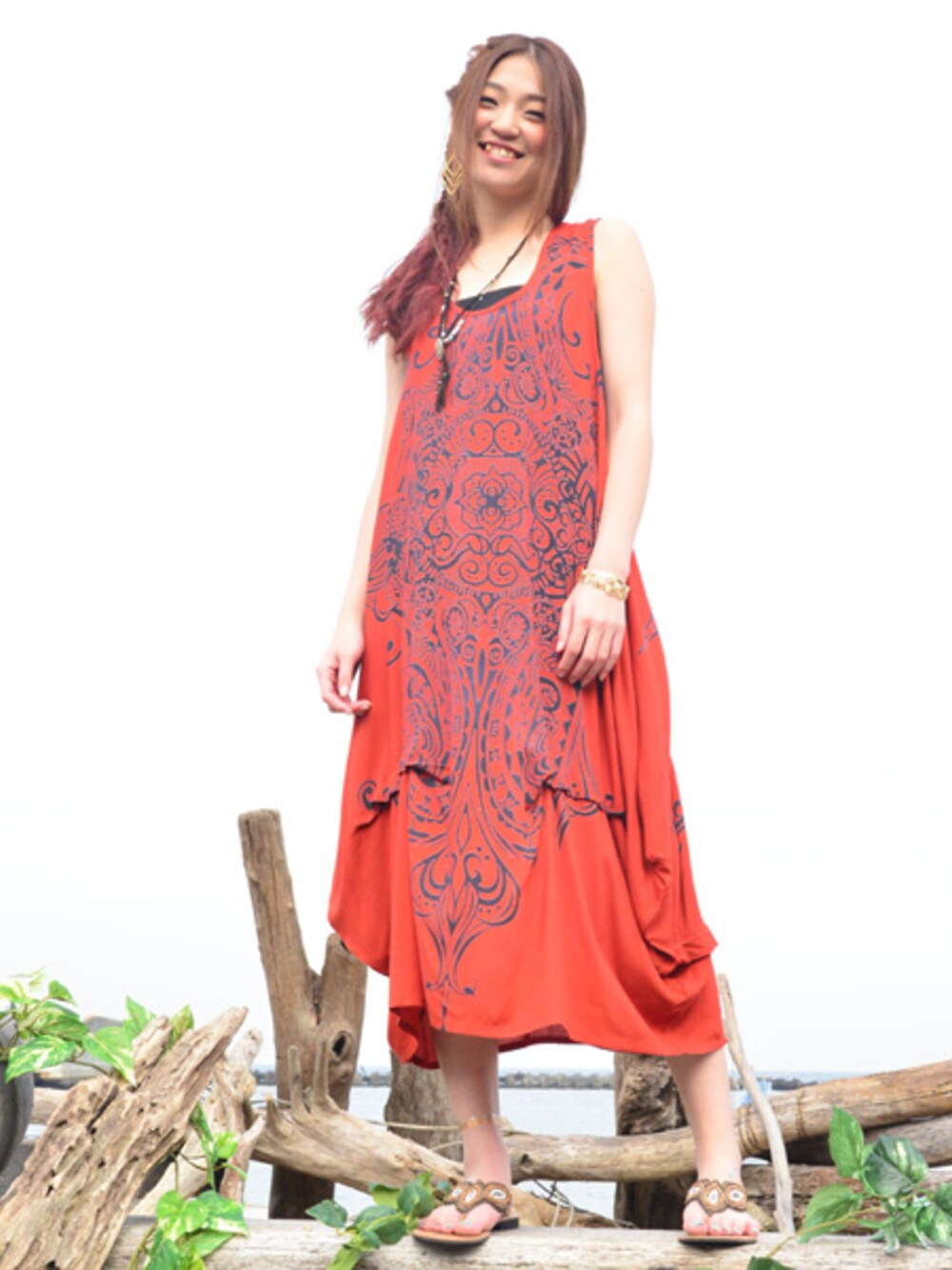 チャイハネSTAFF amiのワンピース「【チャイハネ】yul トライバルプリント変形ノースリーブワンピース」を使ったコーディネート
