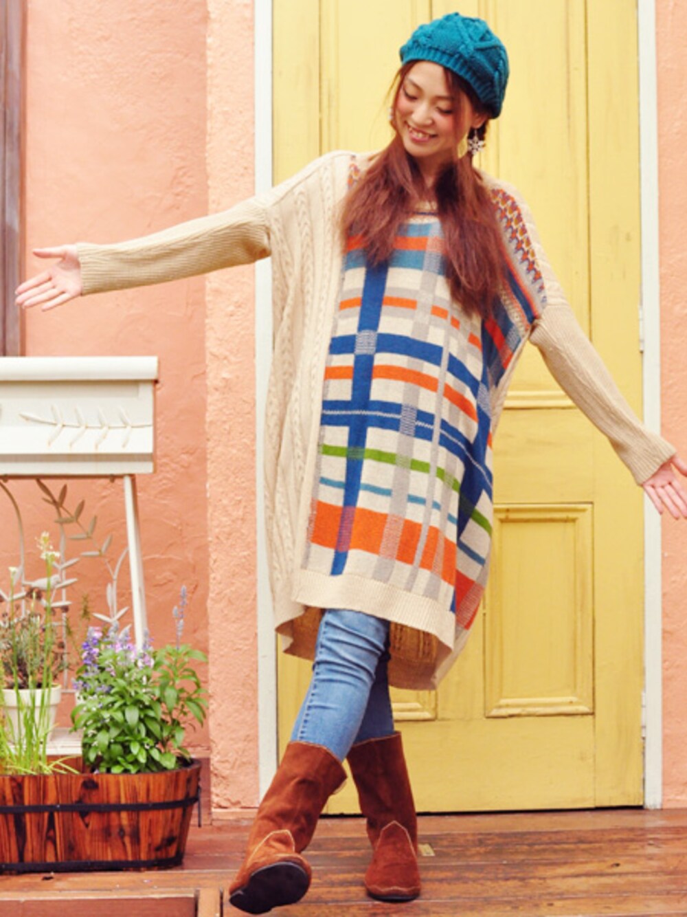 この秋のお気に入りニット♪ カラフルなチェック柄のワンピースです** ビッグシルエットなので 楽(らく)~に着られますよ◎