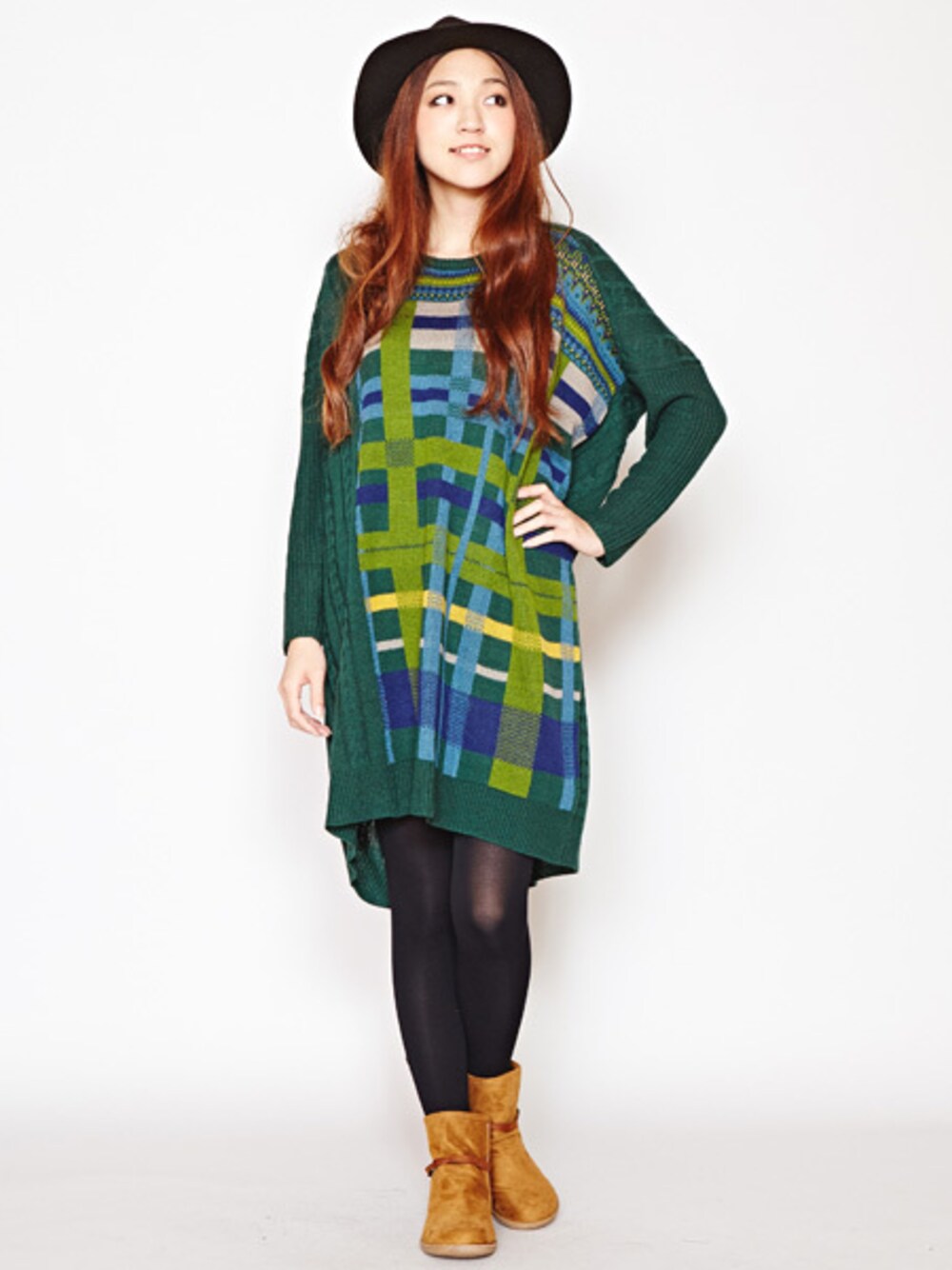 チャイハネSTAFF amiのチュニック「【チャイハネ】yul チェック柄ジャガードワンピース / ビックシルエット」を使ったコーディネート
