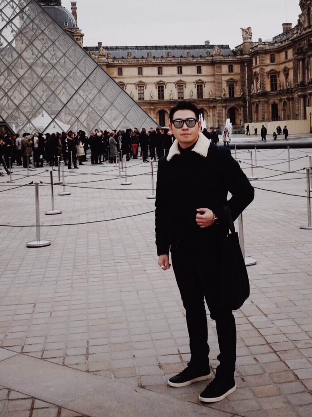 ブラック系のスニーカーを着用したメンズの冬コーディネートの1枚目の写真