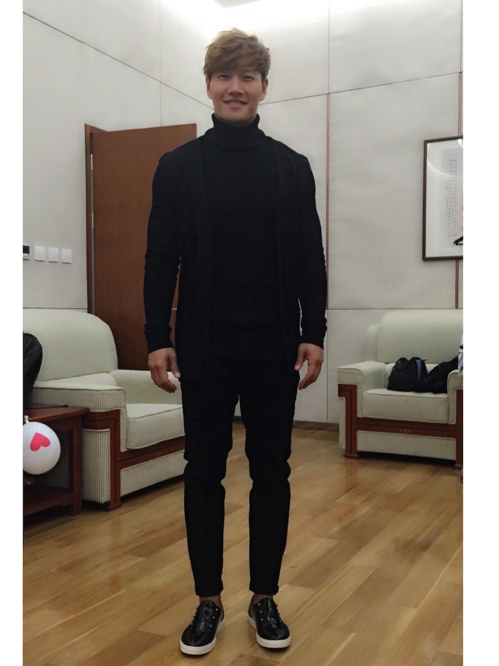 ブラック系のスニーカーを着用したメンズの冬コーディネートの1枚目の写真