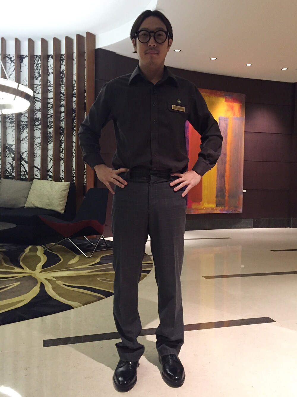 ブラック系のドレスシューズを着用したメンズの春コーディネートの1枚目の写真