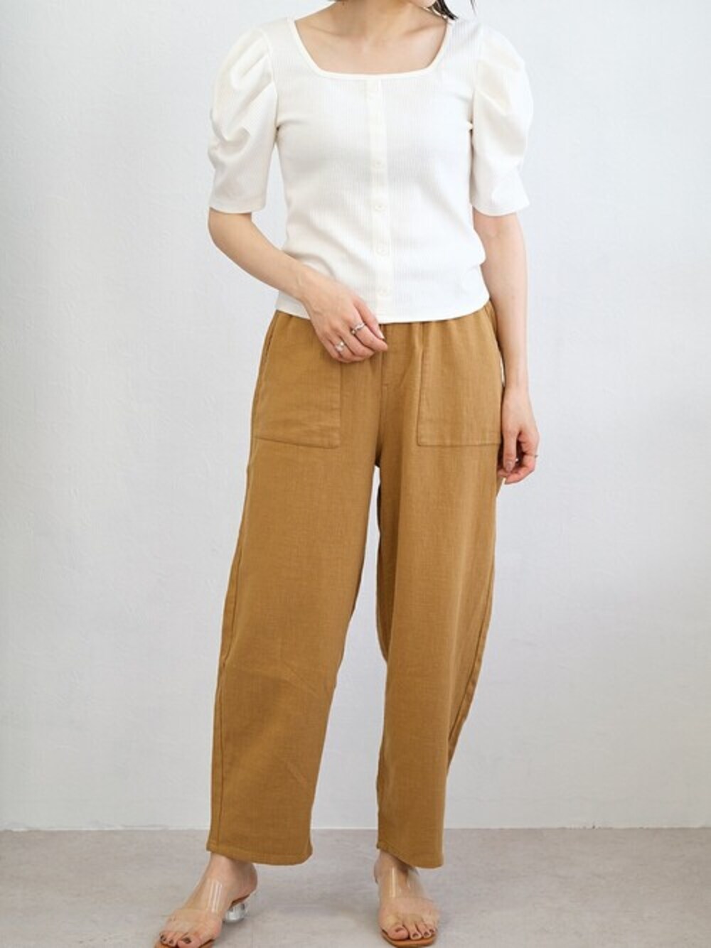 ANDJのTシャツ/カットソー「パワーショルダースクエアネックテレコTシャツ」を使ったコーディネート