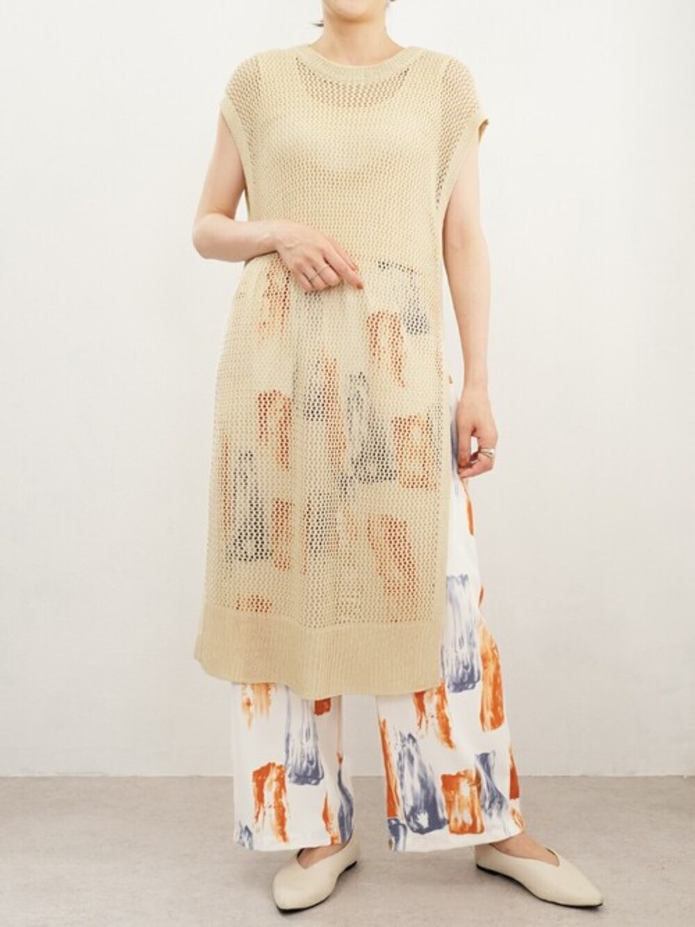 リネンタッチ透かし編みニットベストワンピース(tt75x04946) アート柄イージーパンツ(bf76x05006) 着用アイテムから飛べない商品、ZOZOTOWNで未販売の商品は、ANDJの公式サイト内で商品番号検索が出来ます。カッコ内、下4桁の数字入れていただきますと検索いただけます。 instagram:andj_jp IGTVにて動画配信中📷