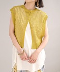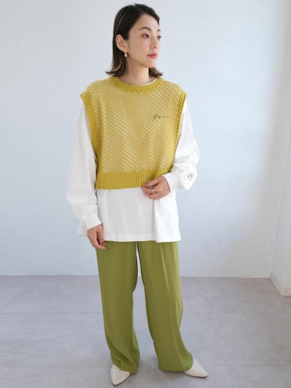 ANDJのベスト「2WAY透かし編みリネンタッチニットベスト」を使ったコーディネート
