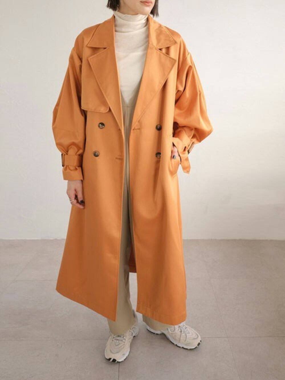 ANDJのトレンチコート「高密度ツイルボリューム袖トレンチコート」を使ったコーディネート