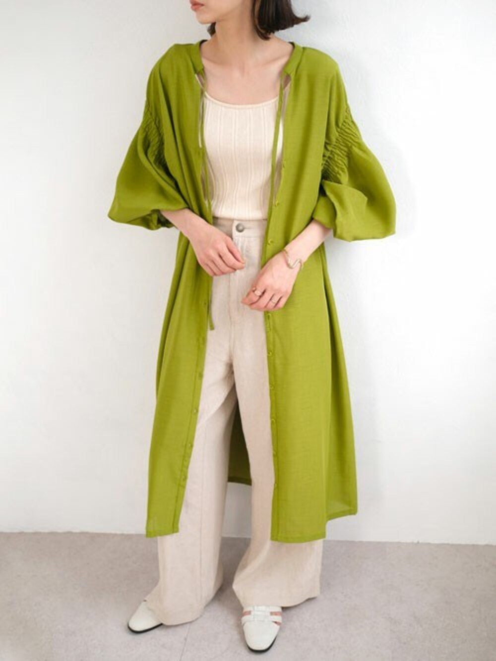 2wayスプラジョーゼットギャザーワンピース(wz77c04901) 麻混ウエストリボンベイカーストレートパンツ(bf78x04880) instagram:andj_jp IGTVにて動画配信中📷