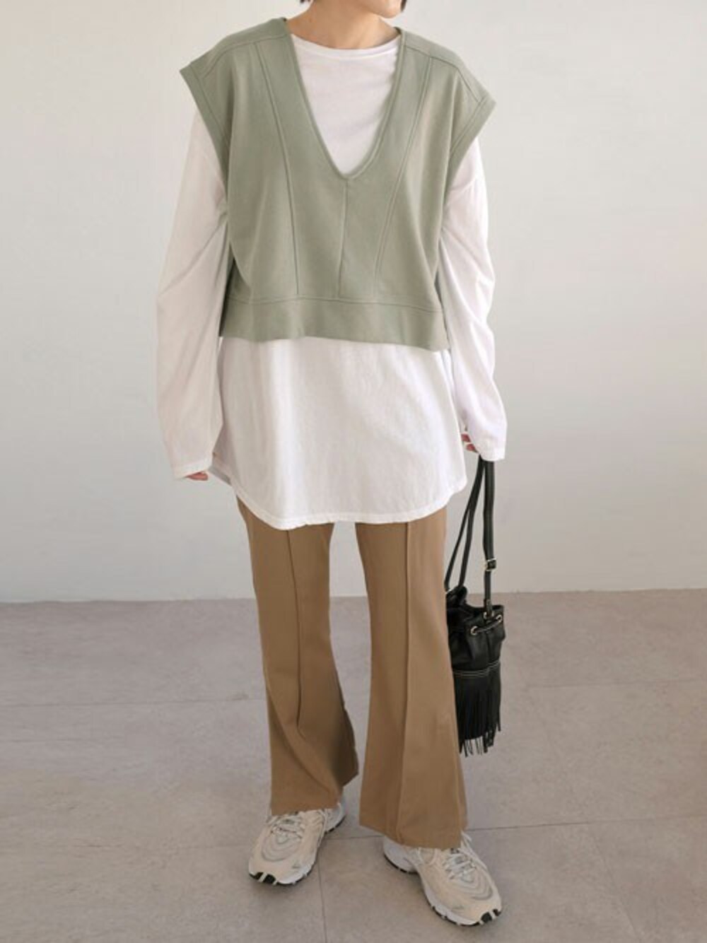 サイドスリットスウェットベスト(tv76x04584) センターピンタックツイルイージーフレアパンツ(bf77q04796) instagram:andj_jp IGTVにて動画配信中📷