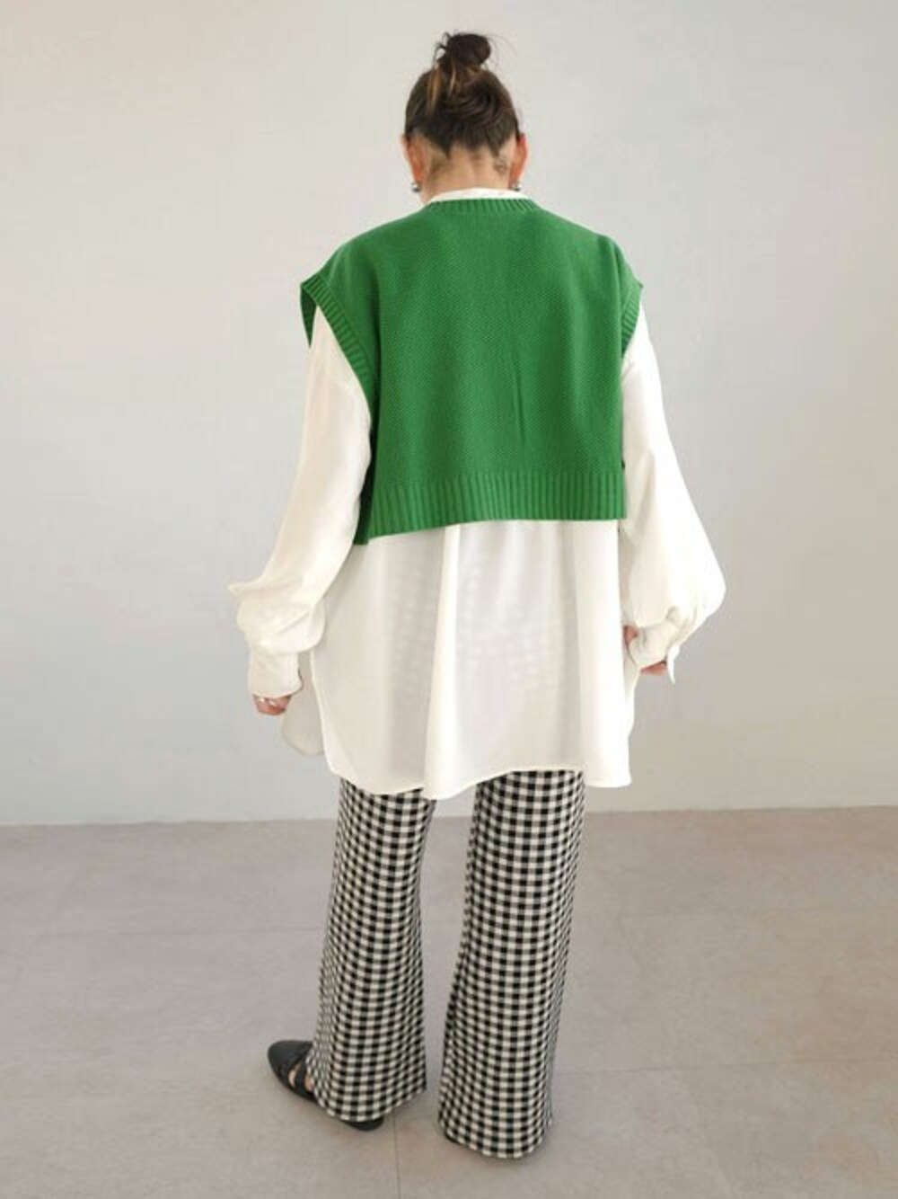 2WAY鹿の子編みスリットニットベスト(tv77c04837) キルティングヨークバンドカラーブザムブラウス(tb76q04944) 総柄ジャガード織りフレアニットパンツ(bf29q04712) instagram:andj_jp IGTVにて動画配信中📷