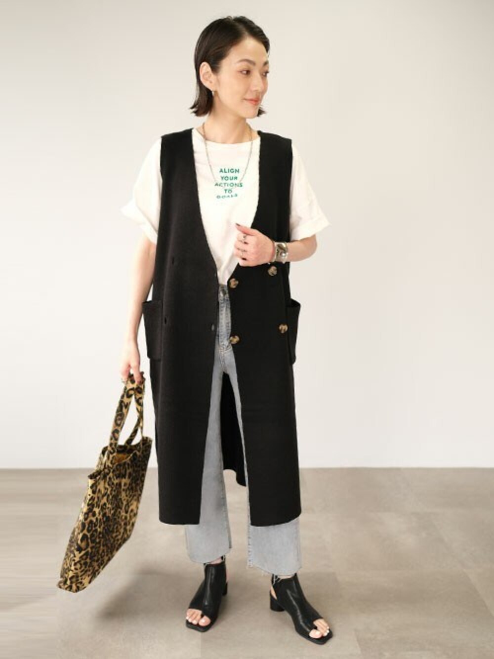 ANDJのベスト「ジャガードニットロングジレ」を使ったコーディネート