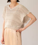 ANDJのニット/セーター「2枚セット透かし編み背中レースアップニットトップス&キャミ」を使ったコーディネート