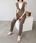 シャーリングプリーツパワーショルダーブラウス(tb09c04899) Vネックサロペットオールインワン(bo80c05042) instagram: andj_jp