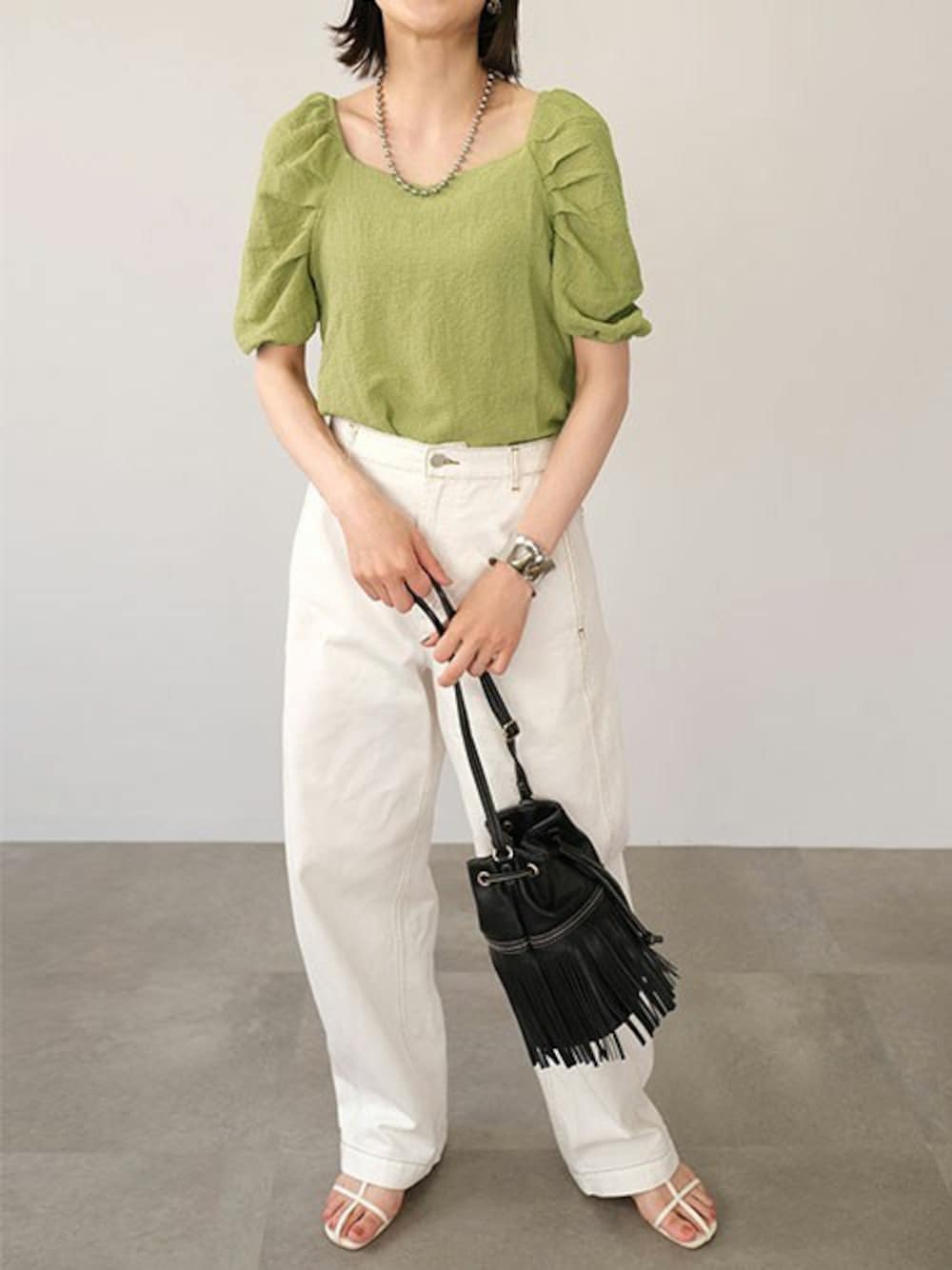 ANDJのTシャツ/カットソー「パワーショルダーラグランスリーブ ワッシャー トップス」を使ったコーディネート