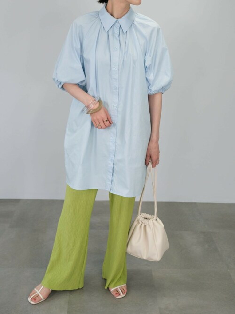 ANDJのシャツ/ブラウス「ボリュームスリーブチュニックブラウス」を使ったコーディネート