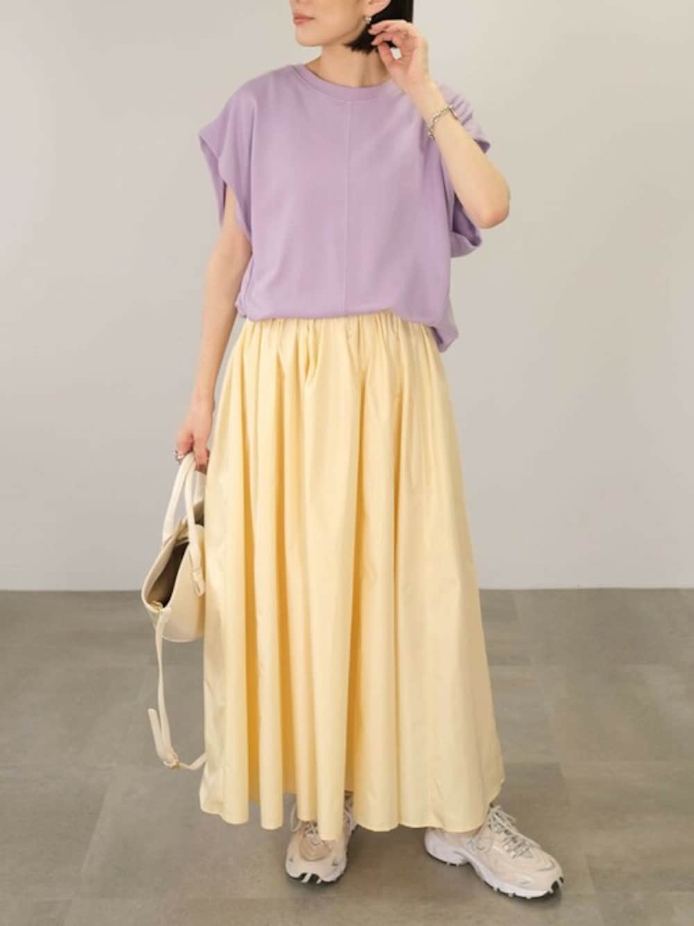 オーバーサイズノースリーブスウェット(tz78x05051) タフタマキシフレアスカート(bt77c05053) Instagram : andj_jp