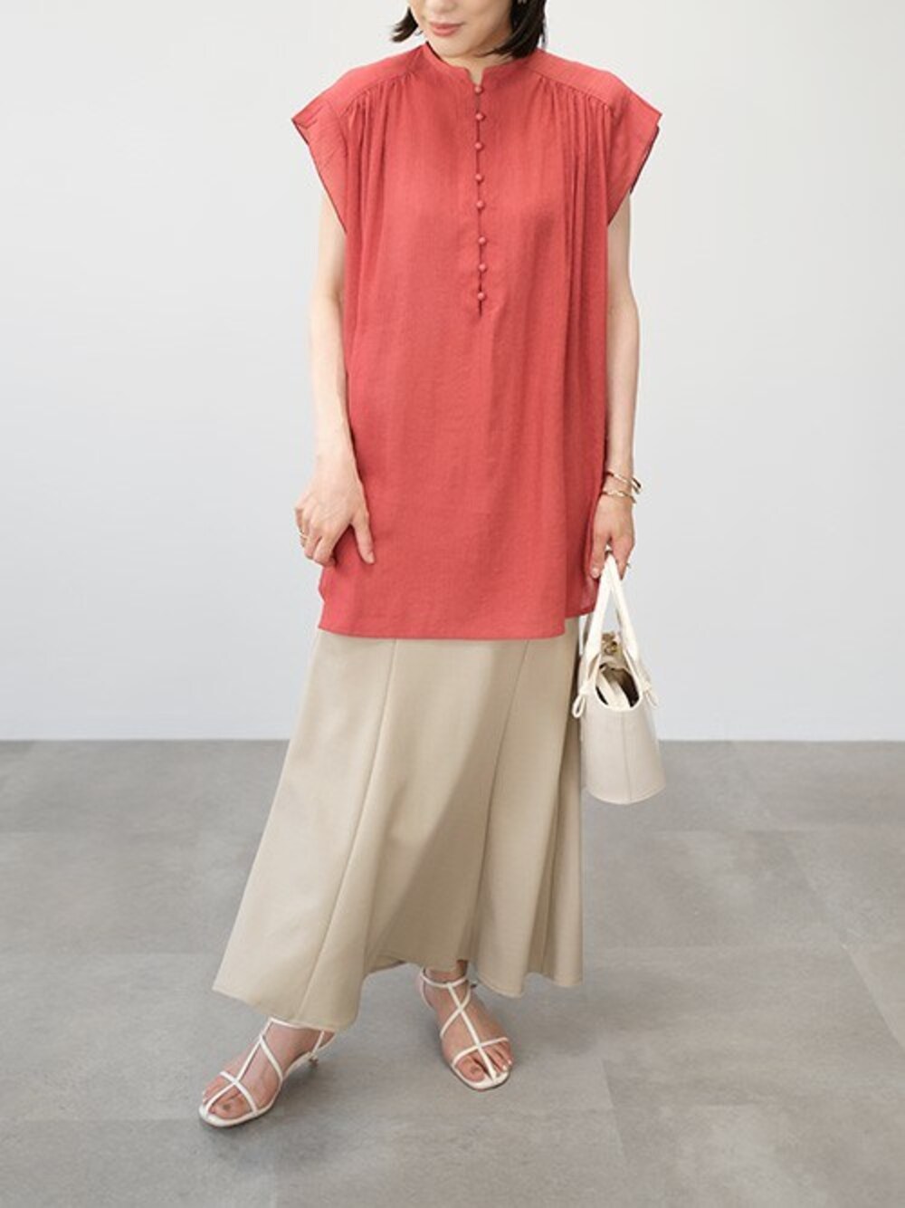 ANDJのシャツ/ブラウス「楊柳シフォンフレンチスリーブブラウス」を使ったコーディネート