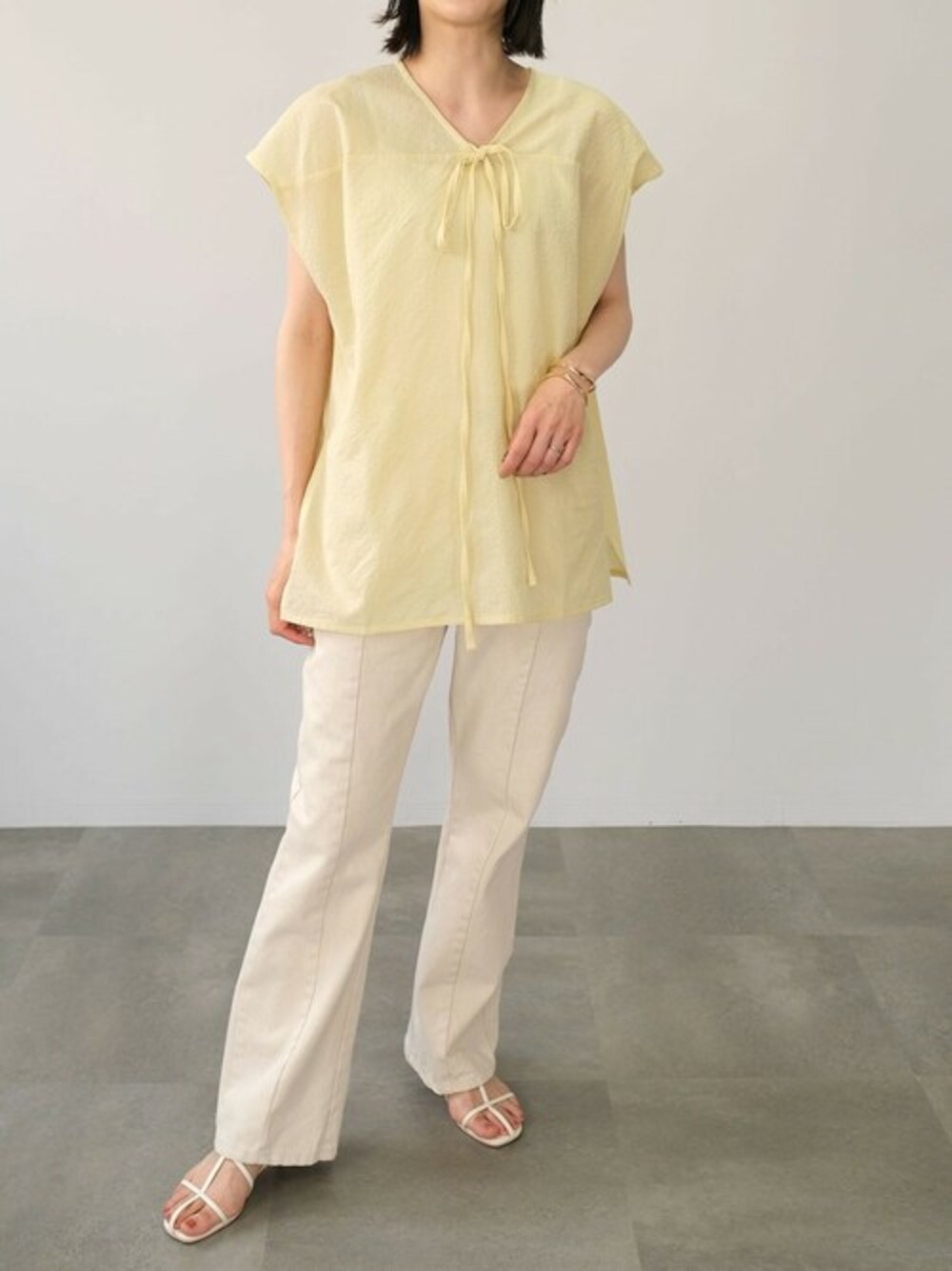 ANDJのTシャツ/カットソー「2WAYシアーサッカーギンガムトップス」を使ったコーディネート