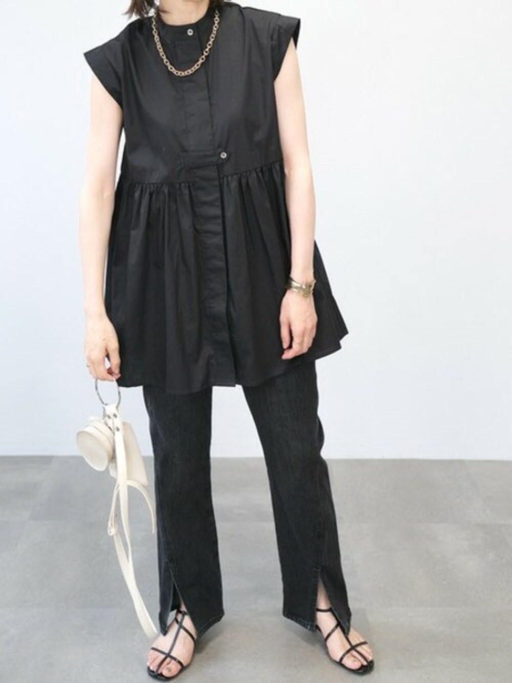 フレンチスリーブギャザー切替ブラウス(tb77x04965) スーパーストレッチ裾スリットデニムパンツ(bg09c04839) リングハンドショルダーポーチバッグ(gz76c04938) Instagram : andj_jp