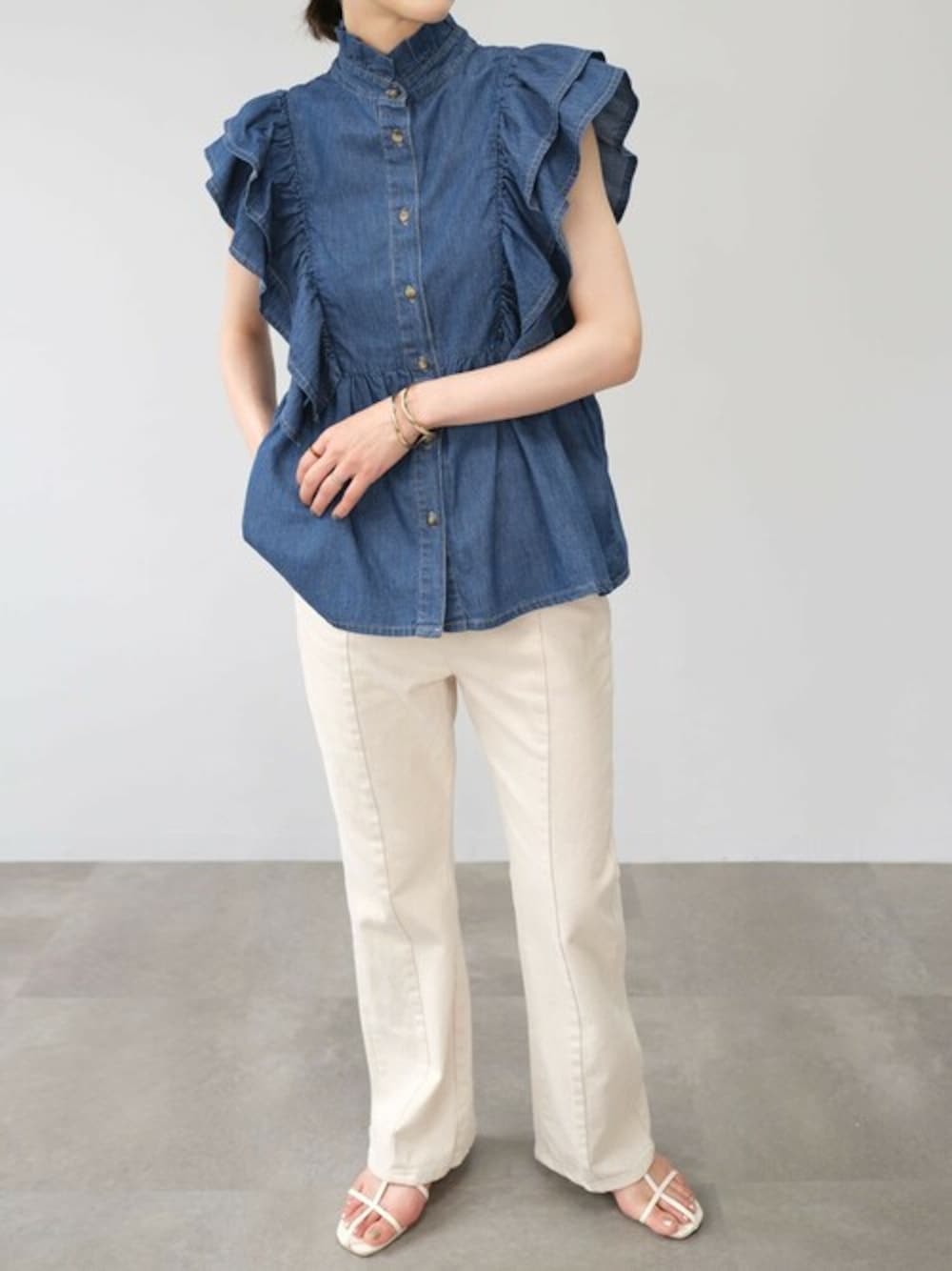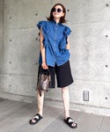 ANDJのシャツ/ブラウス「6.5ozデニムフリルノースリーブブラウス」を使ったコーディネート