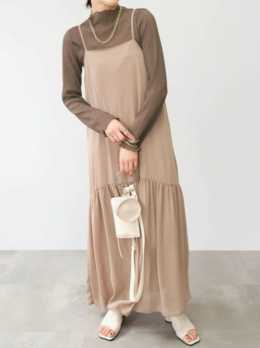 楊柳プリーツシアートップス(tz75q05109) 楊柳シフォンキャミワンピース(wm77x05085) リングハンドショルダーポーチバッグ(gz76c04938) Instagram : andj_jp