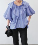 ANDJのシャツ/ブラウス「【2022/AW】先染めストライプフリルブラウス」を使ったコーディネート