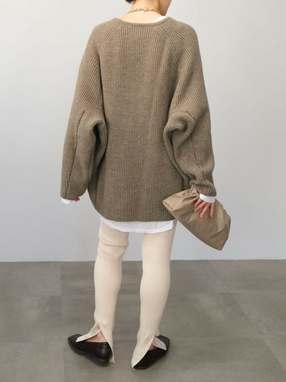 【ANDJMADE】バックスリットリブニットレギンスパンツ(br29q05117) 【ANDJ MADE】Vネックオーバーサイズニット(tn29d04821) Instagram : andj_jp