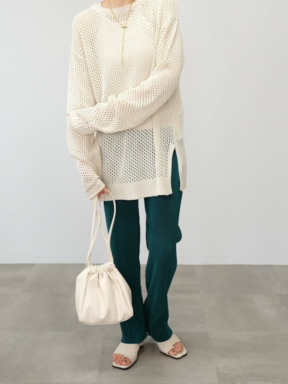 ANDJのニット/セーター「コットンタッチフィッシュネットメッシュ編みニット」を使ったコーディネート