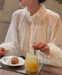 ANDJのシャツ/ブラウス「【ANDJ MADE】【2022/AW】襟シャーリングフリルスタンドカラーシアーブラウス」を使ったコーディネート