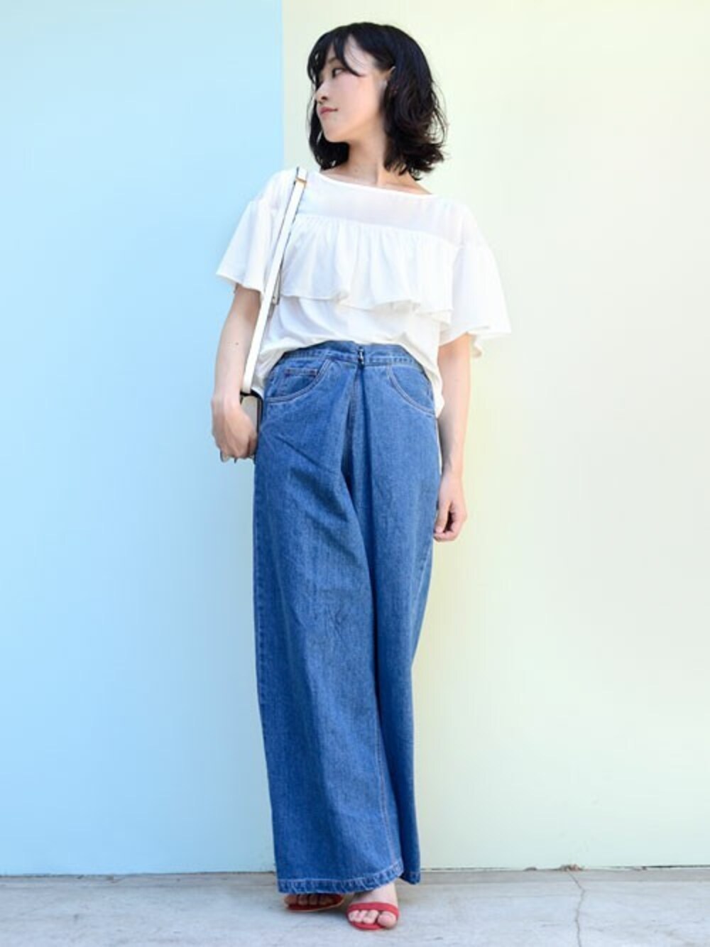 ちひろのデニムパンツ「センターフックデニムワイドパンツ」を使ったコーディネート