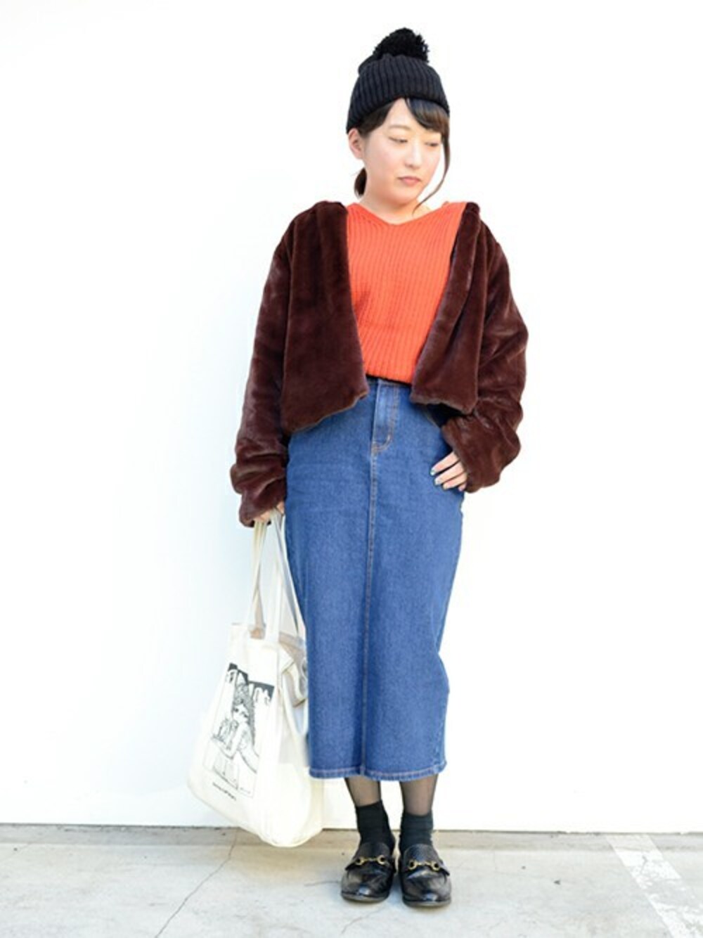 ボリュームアウター×デニムタイトスカートでメリハリカジュアルコーデ!