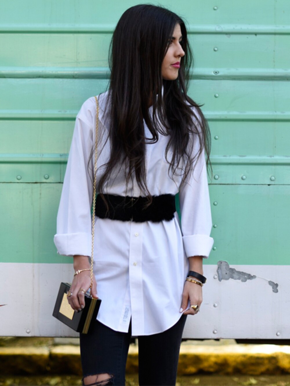 ARTELIERbyCristinaRamellaのクラッチバッグ「World Clutch」を使ったコーディネート