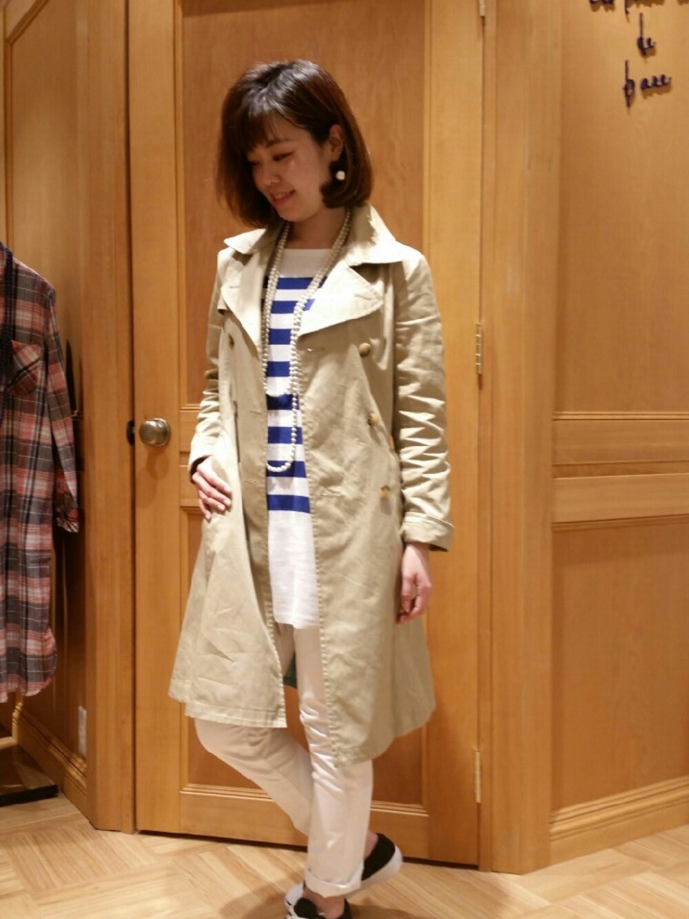 *゜。*゜。*゜。*゜。*゜。*゜。*゜。* 春のスタイリングです。 ベージュのトレンチコートは欠かせませんね。 柔らかいトレンチは着やすくて毎日着たくなります♪ 飽きのこないお気に入りの一枚です。 *゜。*゜。*゜。*゜。*゜。*゜。*゜。*