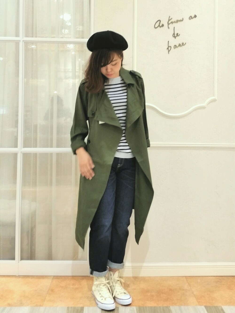 *゜。*゜。*゜。*゜。*゜。*゜。*゜。* カーキは 外せない! お天気のいい 暖かい日は トレンチ型の羽織をまとって なびかせると モデルになった気分* *゜。*゜。*゜。*゜。*゜。*゜。*゜。*